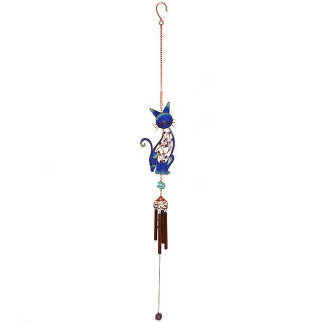 A beautiful blue hand crafted metal, glass & resin windchime in a Cat design. UK Exclusive design to Something Different Wholesale. Ethically sourced. Suitable for indoor and outdoor display.