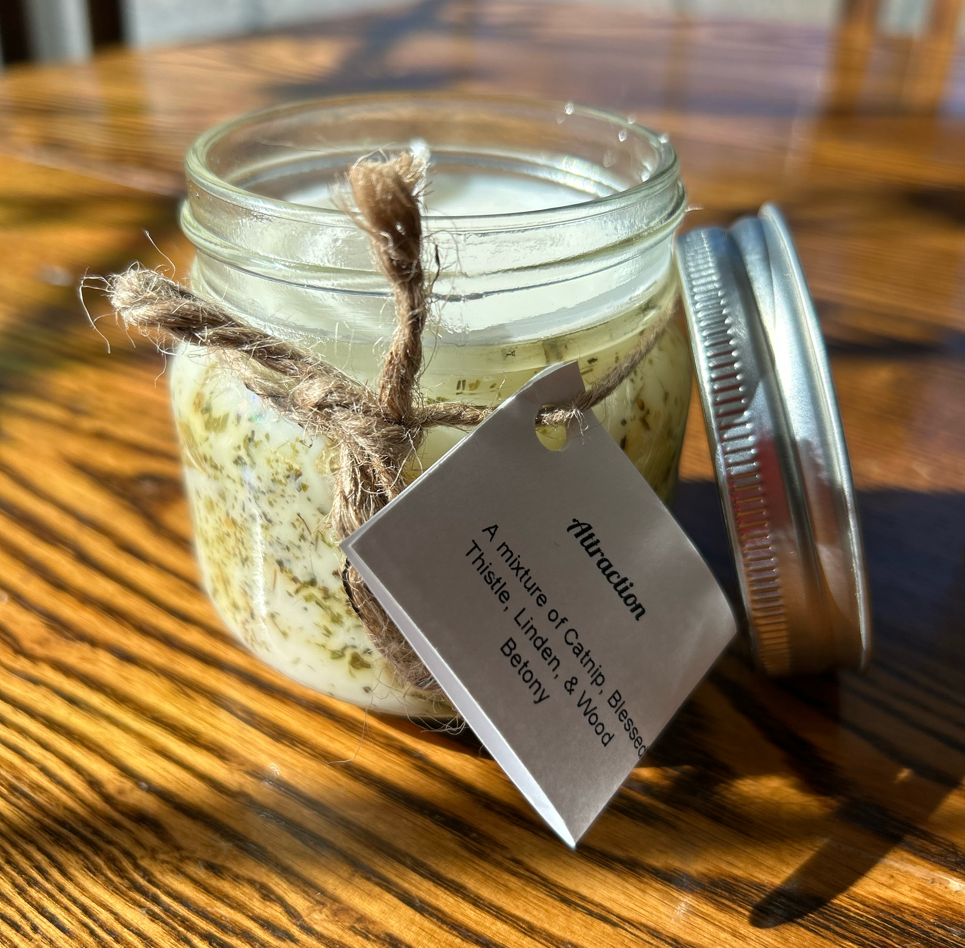 - Attraction candles include: Catnip, Blessed Thistle, Linden, & Wood Betony