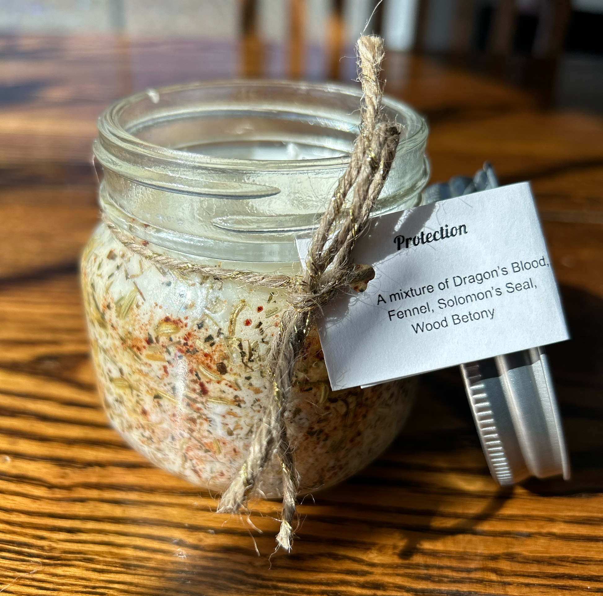 - Protection candles include: Dragon's Blood, Fennel, Solomon's Seal, & Wood Betony